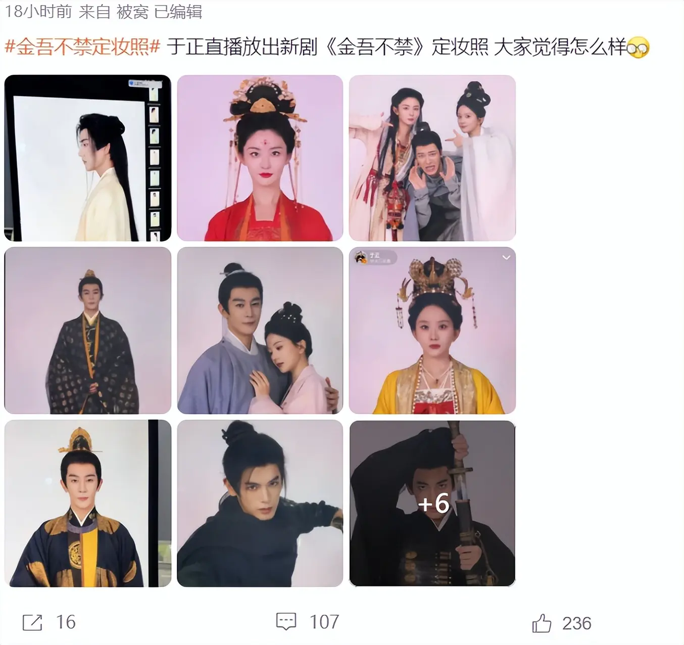 我们可以发现,于正非常重视《金吾不禁》,不仅零片酬出演,还在自己的社交账号大规模宣传,直接让这部剧的热度和关注度上升。《金吾不禁》和《五福临门》的设定有些类似,剧中有多位CP,要知道《五福临门》播出后,取得的成绩是非常亮眼的。