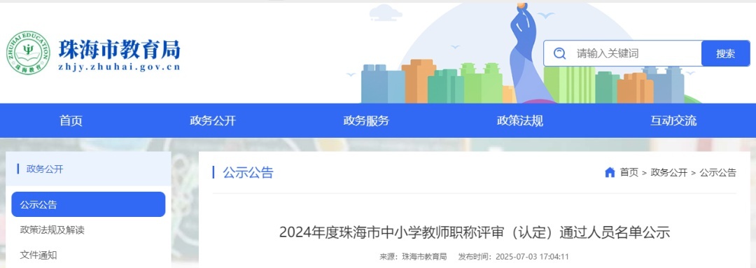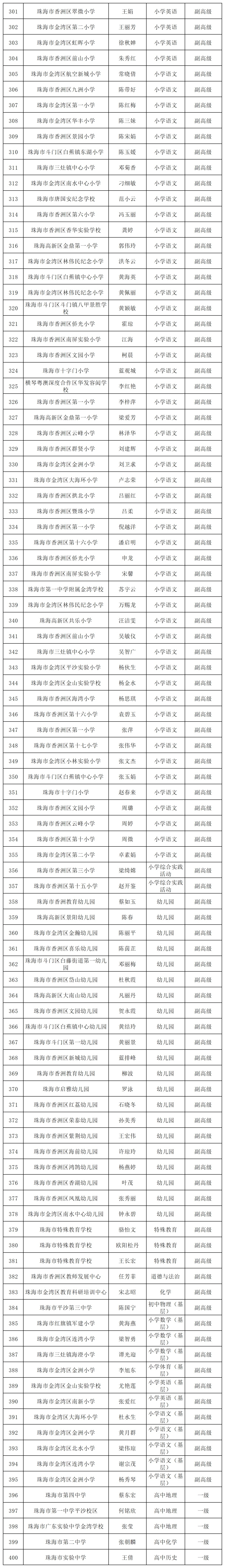 经珠海市中小学教师系列高级职称评审委员会评审,下列人员通过2024年度珠海市中小学教师职称评审(认定),现予公示。